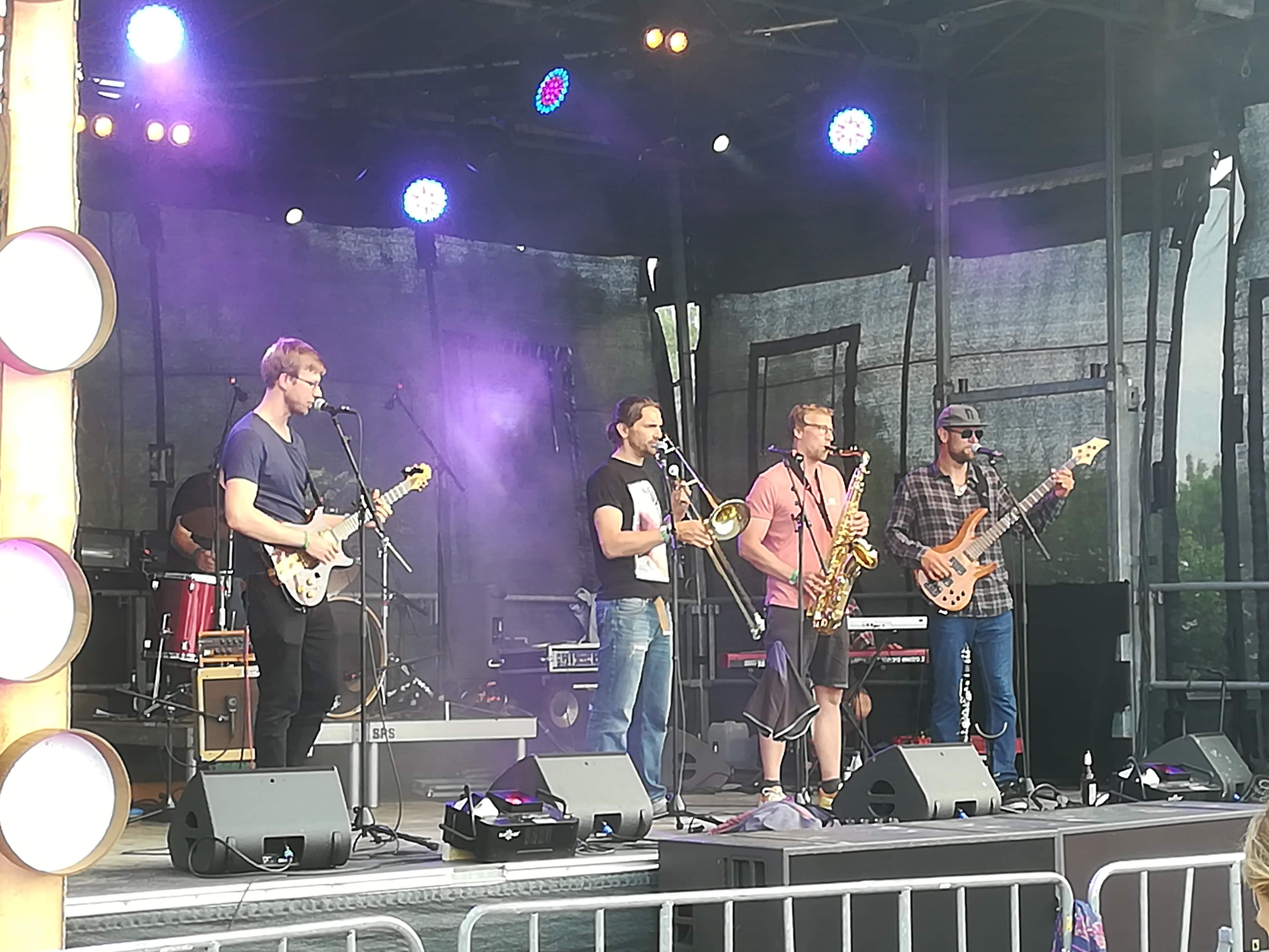 Durch die unverhofft sehr stürmischen Wetterbedingungen durften wir sogar auf der Hauptbühne spielen und möchten der Zuparken-Crew für die flexible Organisation danken. Weiterer Dank geht an die exzellente Tontechnik von Hexe, unseren localen Supportern und allen die so fleißig das Tanzbein geschwungen haben – es war ein unvergesslicher Auftritt!